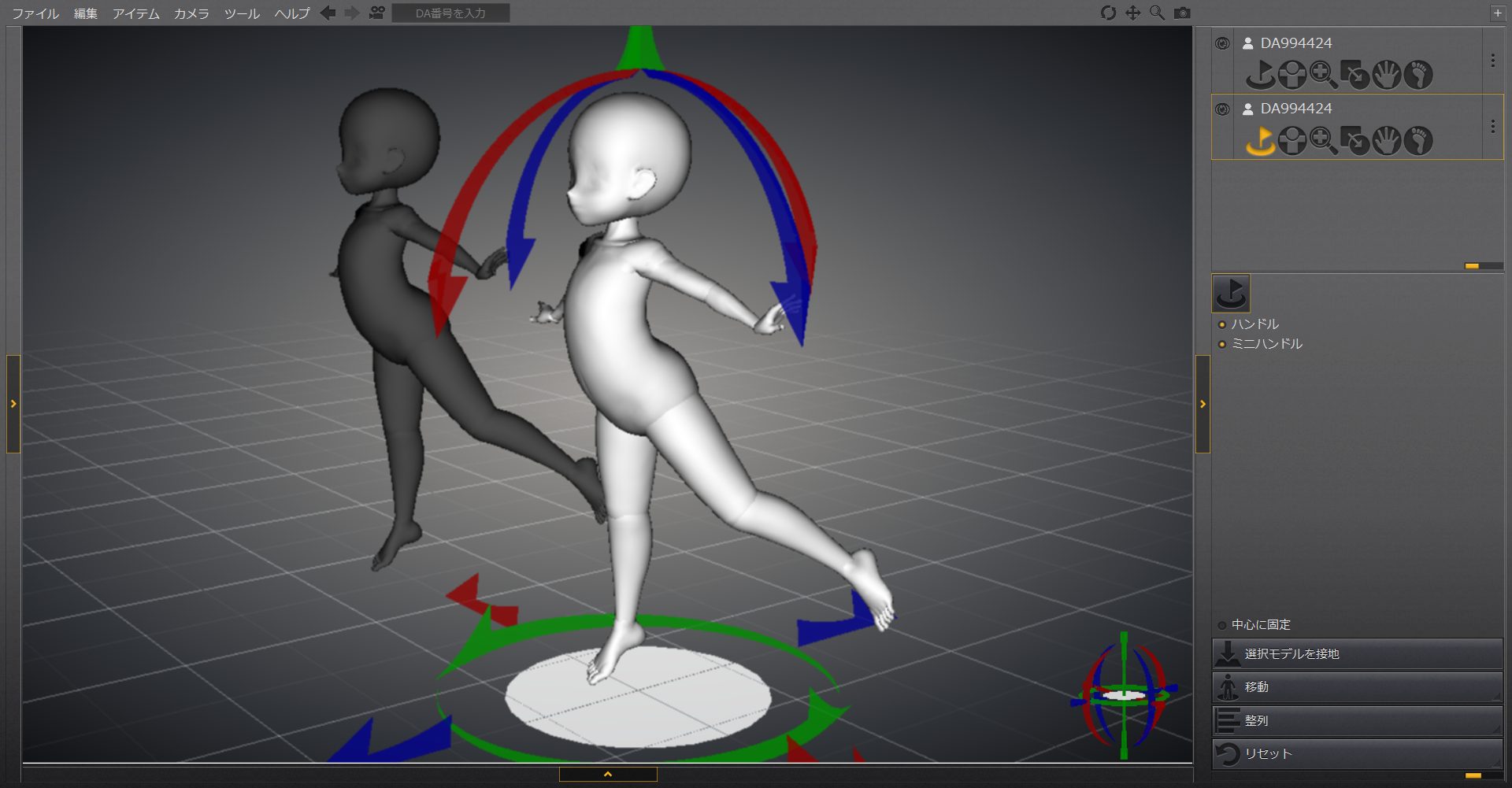 3.すると、ドールのまわりに、ドールを移動させるためのガイドが表示されます。