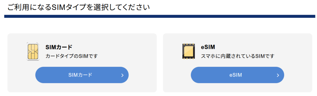 申し込みをする際には、あらかじめSIMをどちらのタイプにするかを決めておくと、フォームの入力がスムーズにすすむかと思います。
