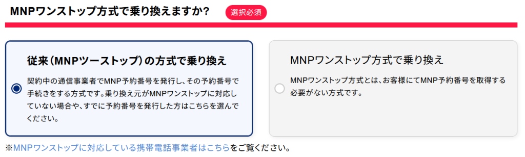 他社から日本通信SIMに乗り換えをする場合、乗り換え方法が「MNPワンストップ方式」と「MNPツーストップ方式」の2つがあります。