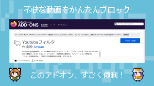 Firefox【YouTube】おすすめに出てくる不快な動画を非表示に!「Youtubeフィルタ」 YouTubeをみていると、おすすめに不快な動画や自分の好みに合わない動画が出てくることがよくあります。 これまではFirefoxの「BlockTube」というアドオンを使ってそうした動画を非表示に... 2025.09.26Firefox